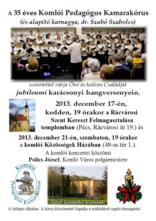 a 35 éves Komlói Pedagógus Kamarakórus jubileumi karácsony hangversenyei